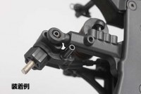 YD-2シリーズのステアリングブロックに取り付け、切れ角を規制するためのストッパーピンです。シャフト径は4mmでスチール製。キット標準のセットスクリューを使用すると、フル舵角でのサス作動時にネジ山で引っ掛かりを感じることがありますが、このパーツに交換することでストロークに影響を与えません。